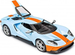 Ta podrobno izdelan model Bburago v vašo zbirko prinaša legendarni Ford GT v privlačni kombinaciji svetlo modre barve z oranžnimi dirkalnimi črtami. Zaradi kakovostne die-cast kovine in natančnih proporcev deluje model zelo realistično ter poudari vsako polico ali vitrino.