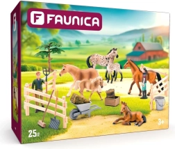 Ta set realističnih figur konj Faunica vključuje pestro mešanico konj in žrebet v pisanem in rjavem videzu. Odlično dopolnjuje katero koli kmečko tematiko in je idealen za otroško igro ali zbirateljske namene.