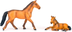 Set vsebuje figure konj in žrebet v različnih barvah in velikostih, kar ponuja široke možnosti za igro in zbirateljstvo.