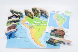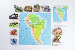 Lesena sestavljanka Južna Amerika in njene živali - 16 koščkov in 10 živali