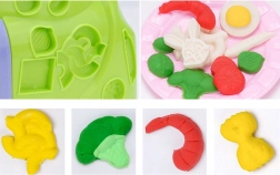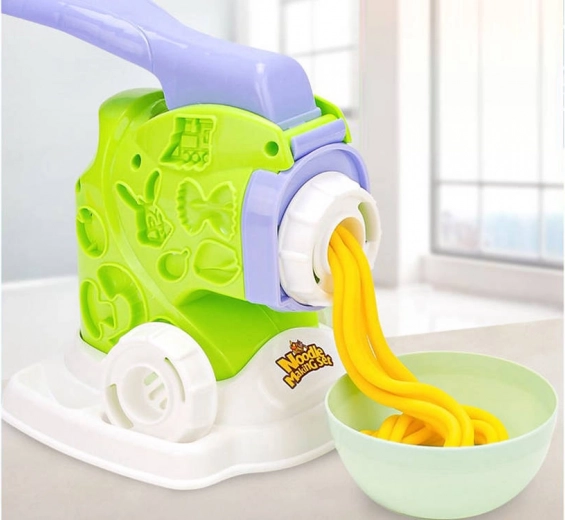 Dovolj je pritisniti ročico in v skledo potujejo “rezanci” ali druge oblike iz modelirne mase. Stiskalnik je stabilen, enostaven za uporabo in otrokom nudi hiter rezultat, ki jih motivira k nadaljnjemu ustvarjanju.