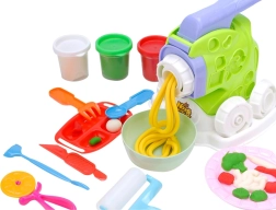 Odkrijte kreativni komplet modelirne mase s stiskalnikom in modelčki, ki otrokom od 3 let zagotovi ure ustvarjanja. Z iztiskalnim stiskalnikom in zamenljivimi nastavki ustvarite špagete, tagliatelle, cvetlice in churrose. Del kompleta je 4× modelirna masa (rdeča, rumena, bela, zelena) ter bogata dodatna oprema za male kuharje in umetnike.