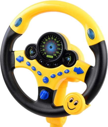Interaktivni volan je zasnovan tako, da popolno ustreza malim rokam in vsako mesto spremeni v armaturno ploščo pravega avtomobila. Zahvaljujoč stojalu s priseski lahko igračo stabilno pritrdite na gladko površino, medtem ko daljinski upravljalnik s ključi doda še več zabave. Žive barve, osvetljeni kazalniki in številni gumbi podpirajo domišljijo, koordinacijo oko–roka in čutno zaznavanje.