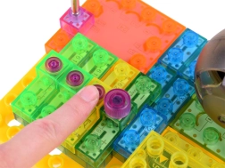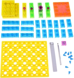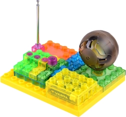 Ta izobraževalni komplet otroke nauči sestaviti resnično delujoči FM radio iz posebnih prevodnih kock. Na voljo sta dva modela – preprost radio brez regulacije glasnosti ali razširjena različica z tekočim uravnavanjem glasnosti in pregledno razporeditvijo vezij. Upravljanje je intuitivno: z gumbom radio vklopite/izklopite, z drugim gumbom izberete FM postajo, z vrtilnim elementom pa nastavite glasnost.