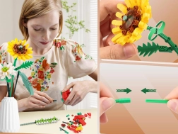 Ta ustvarjalni gradbeni komplet cvetov prinaša vse, kar potrebujete za izdelavo impresivnega šopka dolžine približno 31,5 cm. Deli v živahnih barvah in premišljenih oblikah omogočajo sestavljanje različnih vrst cvetov in listov ter ustvarjanje edinstvene dekoracije za vazo, mizo ali polico.