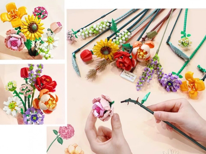 Ustvarite trajno cvetlično dekoracijo iz kock – idealno za vazo, pisalno mizo ali kot edinstveno darilo.