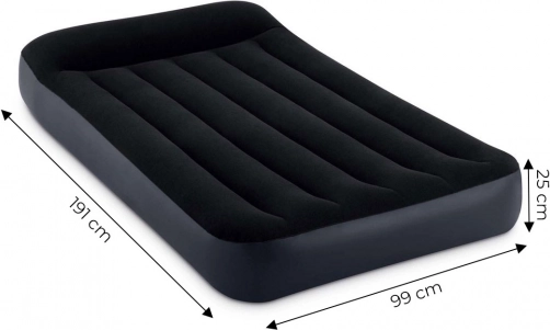 Mere 191 × 99 × 25 cm in oblikovano vzglavje zagotavljajo udobno ležanje za eno osebo – idealno za goste in kampiranje.