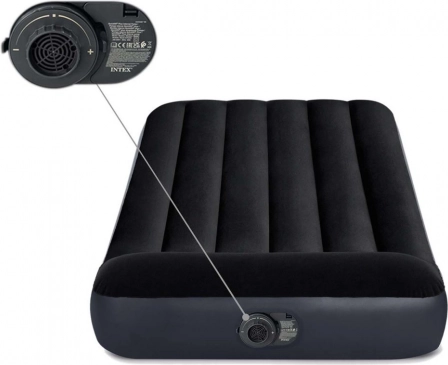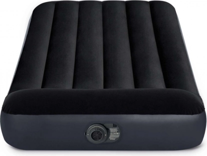 Uživajte v udobnem spancu kjerkoli. Ta enojna napihljiva postelja INTEX združuje vzdržljiv PVC s prijetnim, vodoodpornim velurjem, ki preprečuje drsenje rjuhe in povečuje udobje. Integrirana črpalka vam prihrani čas – vzmetnica se napihne v hipu in prav tako enostavno jo tudi izpihnete.