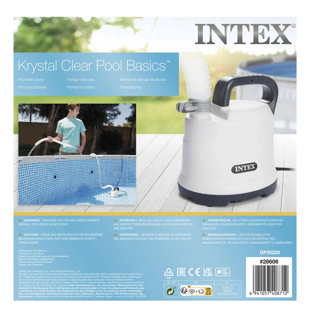 Črpalka 220–240 V. Dolžina cevi 5 m. Črpa 3595 litrov vode na uro. Največja globina 127 cm. Dolžina kabla 10 m.