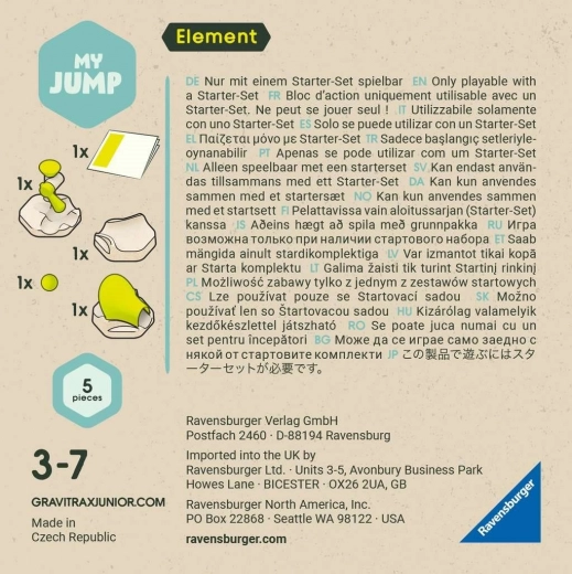Razširitveni element Skok doda vašemu svetu GRAVITRAX JUNIOR dinamiko – kroglica je zaradi natančno zasnovanega mehanizma katapultirana v naslednji del. Otroci lahko tako ustvarjajo še bolj zabavne in akcijske proge ter odkrivajo nove možnosti gradnje.