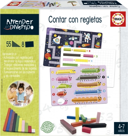 Zabavna izobraževalna igra EDUCA otrokom na igriv način pomaga razvijati matematične spretnosti, razumevanje števil in proporcev ter podpira njihovo logično razmišljanje in samozavest. Zahvaljujoč dejavnostim na obeh straneh plošč in pisanim kockam se učenje spremeni v zabavo.
