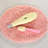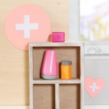 Set vsebuje roza medicinske pripomočke, kot so škarje in maska, ki so idealni za igro zdravnika.