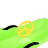 Naslonjalo in volan, čeprav zgolj dekorativna, zagotavljata dodatno udobje in nadzor. Sani so lahke in enostavne za prenašanje.