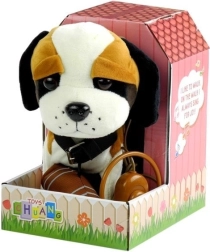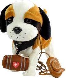 Interaktivni rjavo-beli bernardin na povodcu je izdelan iz mehkega in okolju prijaznega materiala, ki je prijeten na dotik. Opremljen je z velikimi temnimi očmi, dvignjenim repom in izrazitim nosom. Igrača vsebuje dolg povodec s stikalom, s katerim lahko otrok preprosto upravlja svojega ljubljenčka. Kuža pleše in poje, kar dodaja zabavi in realističnosti igre.