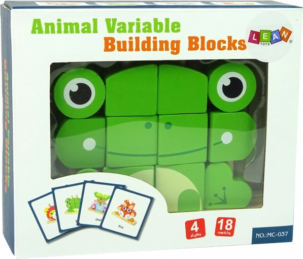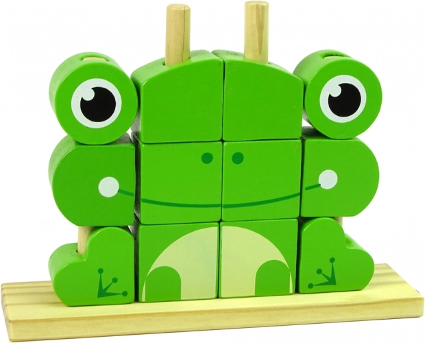 Kreativna lesena sestavljanka v obliki žabice je zasnovana za otroke, da jih spodbudi k ustvarjanju in uči koordinacije. Sestavljanka vsebuje 12 kosov, ki se nameščajo na osnovo s količki, kar omogoča ustvarjanje različnih živalic ali predmetov po domišljiji.