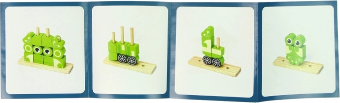 Ta lesena sestavljanka otrokom omogoča ustvarjanje različnih živalic in predmetov, kar krepi njihovo ustvarjalnost in fino motoriko.