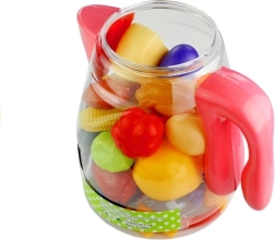 Odkrijte pisan komplet živil v praktičnem vrču z rdečim ročajem. Vsak element tega kompleta je skrbno izdelan iz varne, certificirane plastike, kar zagotavlja brezskrbno zabavo. Vrč z ročajem olajša prenašanje.