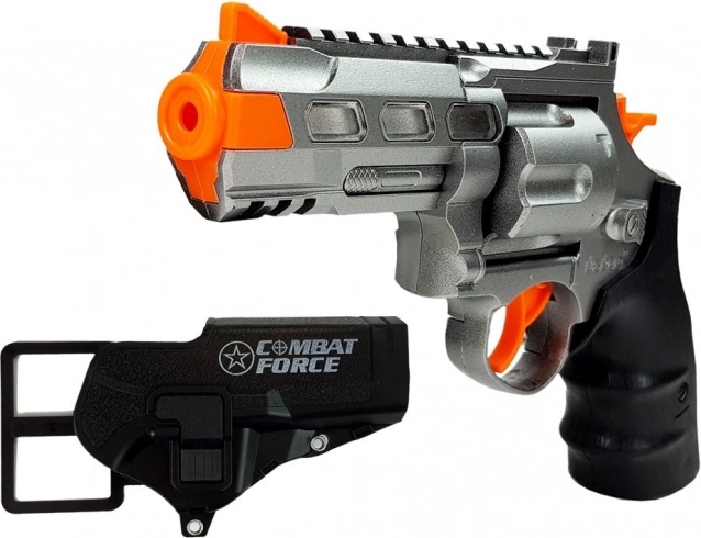 Učinki se aktivirajo s pritiskom na sprožilec in pri ponovnem polnjenju. Realistična srebrno‑črna površinska obdelava in varna zasnova za otroško igro.