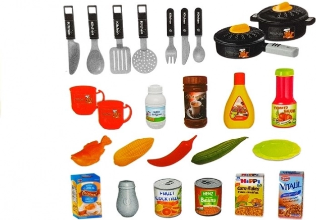 V paketu je bogat nabor dodatkov: posoda, jedilni pribor, živila in pripomočki za vsestransko igro. Kuhinjica spodbuja igranje vlog, razvoj besedišča in skupno igro otrok.