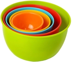 Skledice v živahnih barvah pomagajo pri prepoznavanju barv, z možnostjo zlaganja ena v drugo pa prihranijo prostor.