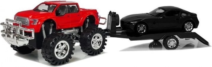 Ta vrednostni komplet združuje robustni rdeči monster truck z odstranljivo avtoprevozno ploščadjo in podrobno izdelanim športnim BMW. Igrače so izdelane iz udarno odporne plastike, ki prenese bolj grobo ravnanje, zato so odlične za domače kroge in terenske pustolovščine.