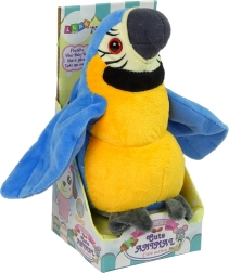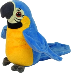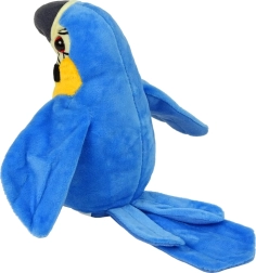Dvo-barvni papagaj izgleda kot pravi in je prekrit z materialom, prijetnim na dotik. Pisane peruti, rumena in modra barva so značilnosti, ki natančno ustrezajo pravim papagajem.