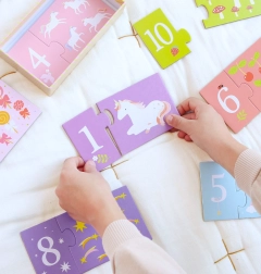 Ta ljubka zbirka otrokom ponuja zabaven način učenja števil in razvijanja fine motorike. Vsaka številka ima svojo ustrezno sliko z danim številom motivov s tematiko samorogov, kar podpira vizualno zaznavanje in pravilno ujemanje.