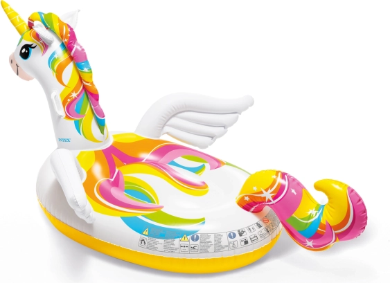 Napihljiv otok Mega samorog je stilski in prostoren plavalni element, ki bo v središču pozornosti na vsaki poletni zabavi. Velike dimenzije 251 × 163 × 145 cm ponujajo dovolj prostora za udobno poležavanje in skupno zabavo. Z dvema zračnima komorama je stabilen in varen, medtem ko trdna ročaja olajšata vstopanje in manevriranje na vodi.