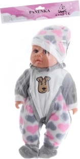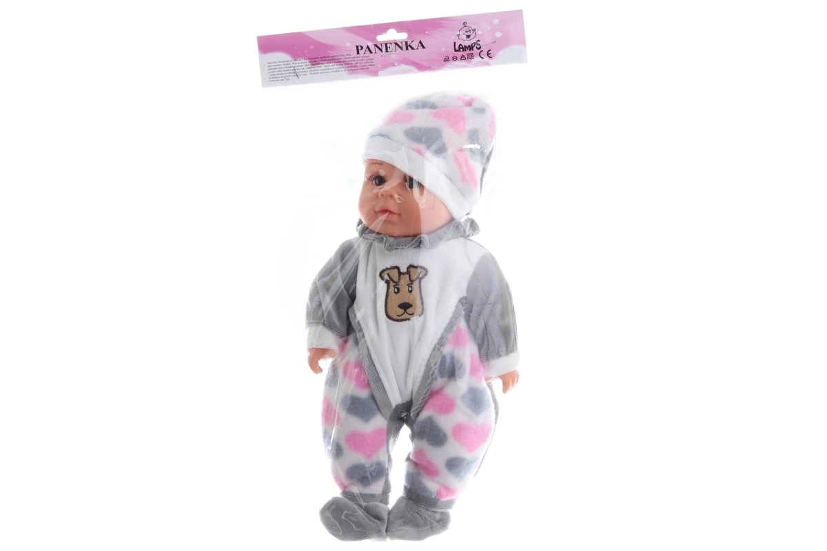 Dojenček z mehkim telescem. Ob pritisku na telo dojenček začne oddajati zvoke (smeh, jok, mama, ata). Dojenček je oblečen v barvito pižamico, ki jo je mogoče sleči (ježek). Dimenzije dojenčka približno 30 × 15 × 6 cm. Pakirano v plastični vrečki. Deluje na 3 gumbaste baterije. Starost 3+