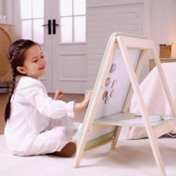 Lesena tabla PolarB je odlično orodje za male umetnike, ki spodbuja ustvarjalno igro in razvoj ročnih spretnosti. Tabla ima dve strani – klasično črno tablo in belo magnetno površino. Zahvaljujoč nastavljivi višini se prilagaja rasti otroka in zagotavlja udobno igro v različnih fazah razvoja.