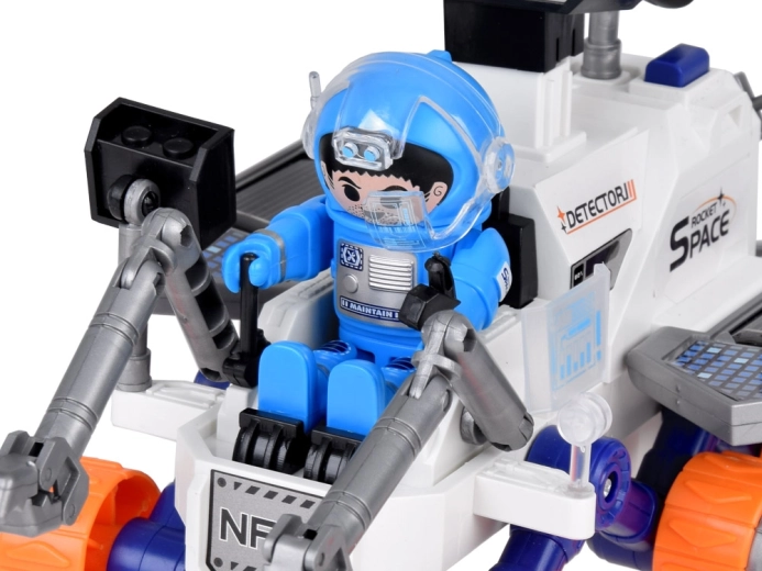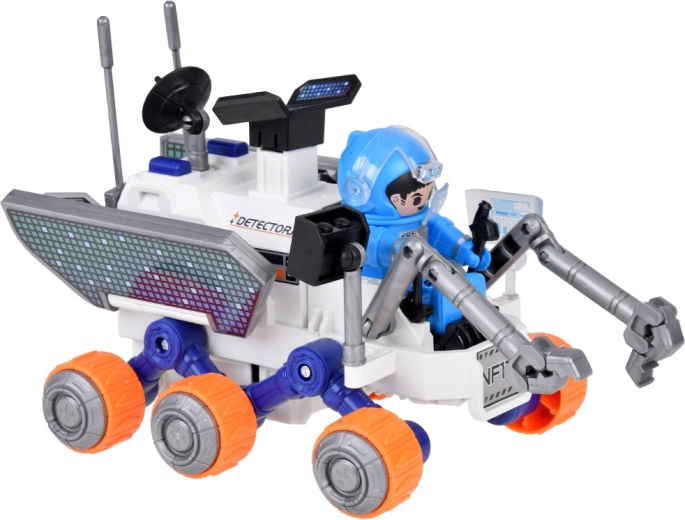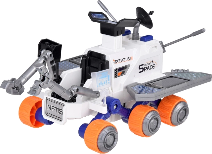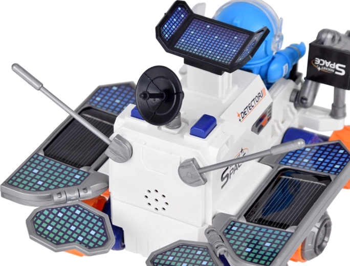 Ta realistični vesoljski rover bo navdušil vse male raziskovalce. Stabilna konstrukcija iz trpežne plastike, šest koles ter funkcionalne roke in antene vabijo k domiselni igri in odkrivanju neznanih svetov. Priložena je podrobna figurica astronavta v modrem skafandru s premičnimi okončinami in čelado.