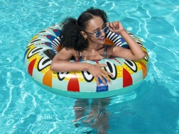 Dodajte zabavo in stil svojemu bazenu s plavalnim obročem Bestway Flirty Fiesta, ki navduši z živahnim vzorcem in drzhnimi barvami.