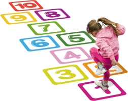 Skakanje po oštevilčenih poljih izboljšuje motoriko in ravnotežje – popolno za igro ristanc.