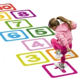 Nalepke lahko poljubno kombinirate in razporejate v različne vzorce za klasično igro ristanc in druge gibalne aktivnosti. Skupno lepljenje s starši razvija kreativnost in domišljijo otrok ter spremeni učenje števil v motivacijsko igro.