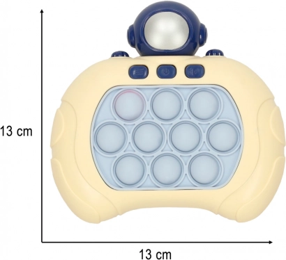 Ta interaktivna antistresna igra v dizajnu astronavta združuje pomirjujoč »pop« učinek z inteligentnim svetlobnim in zvočnim odzivom. Zahvaljujoč štirim načinom si otroci urijo hitrost reakcije, osredotočenost in spomin ter se pri tem odlično zabavajo. Kompaktno ohišje in prijetno upravljanje ustrezata otrokom od 6. leta dalje.