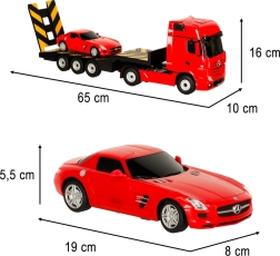 Uživajte v neomejeni zabavi z daljinsko vodenim avtom Mercedes-Benz Actros! Ta avto v privlačni rdeči barvi in merilu 1:26 je popolno darilo za vsakega navdušenca nad avtomobili.