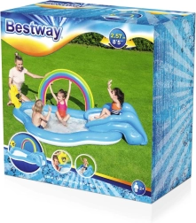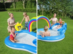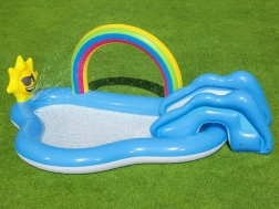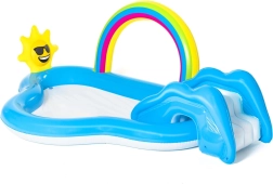 To vodno igrišče je popolna izbira za otroke v vašem poletju. Zahvaljujoč prijazni kombinaciji z mavričnim obokom in sončkom bodo vaši otroci uživali ure zabave v osvežujoči vodi. Večnamenskost bazenčka ne nudi le hladnega zavetja pred poletno vročino, ampak prinaša tudi smeh in veselje zaradi raznolikih funkcij.
