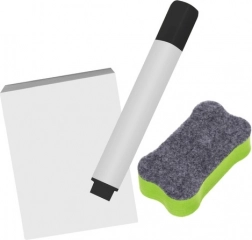 Vključena je polica za shranjevanje pripomočkov ter začetni komplet: barvne krede, flomaster in gobica za takojšnjo uporabo.