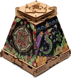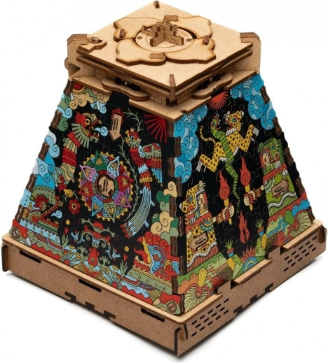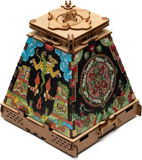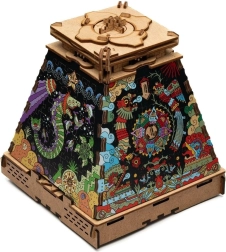 Spremenite leseno piramido v privlačen oblikovalski poudarek. Ta drugi sloj z motivom Azteško cesarstvo elegantno prekrije prvotne motive in vašemu modelu doda izrazit, barvit videz, navdihnjen s starodavno Mezoameriko. Razširitev je namenjena izključno za PIRAMIDO SONCA in ima le dekorativni namen – ne vpliva na mehanizem ali rešitev uganke.