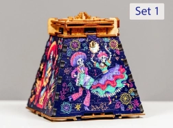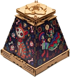 Spremenite svojo ikonično uganko Piramida Sonca v barvit spektakel s tematsko razširitvijo Dan mrtvih. Natančno izrezani leseni koščki in izrazit tisk ustvarijo novo plast, ki poudari dizajn celotne piramide in jo spremeni v izstopajočo dekoracijo. Razširitev je namenjena izključno videzu – ne posega v rešitev izvirne uganke.
