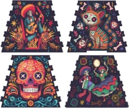 Vdahnite piramidi novo vzdušje. Podrobne ilustracije okostnjakov in simbolov praznika mrtvih dajo vaši Piramidi Sonca edinstven videz, ki izstopa v vsakem interierju.