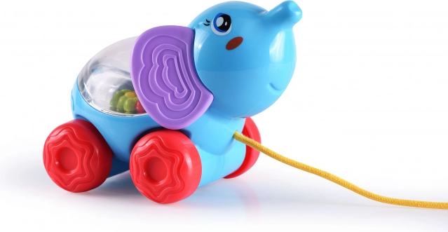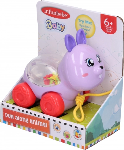 Prisrčna vlečna živalica na vrvici v velikosti 12 cm bo razveselila vsakega otroka. Igrača ima kolesca in pri vlečenju naprej se na hrbtu živalice premikajo kroglice. Na voljo so 3 različice – zajček, slon ali pes.