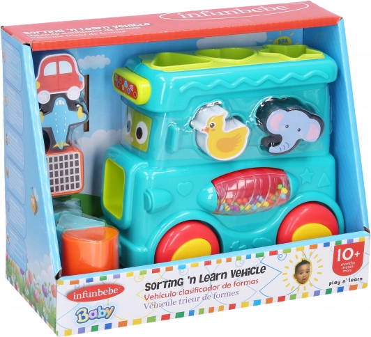 Barvita vstavljanka v obliki avtobusa bo razveselila male raziskovalce. Ponuja 8 vstavljivih oblik, kompaktno velikost 15 cm in podpira razvoj fine motorike ter prepoznavanje oblik in barv.