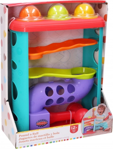 Zabijalska kroglična steza s kladivcem, 3 kroglice, velikost pribl. 32 cm. Razvija motoriko in koordinacijo, idealna igrača za predšolske otroke.