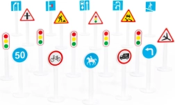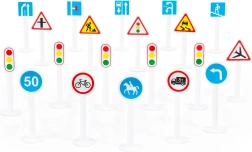 Realistična izvedba – Set sestavljajo plastični znaki, ki zvesto posnemajo prave prometne znake.