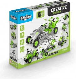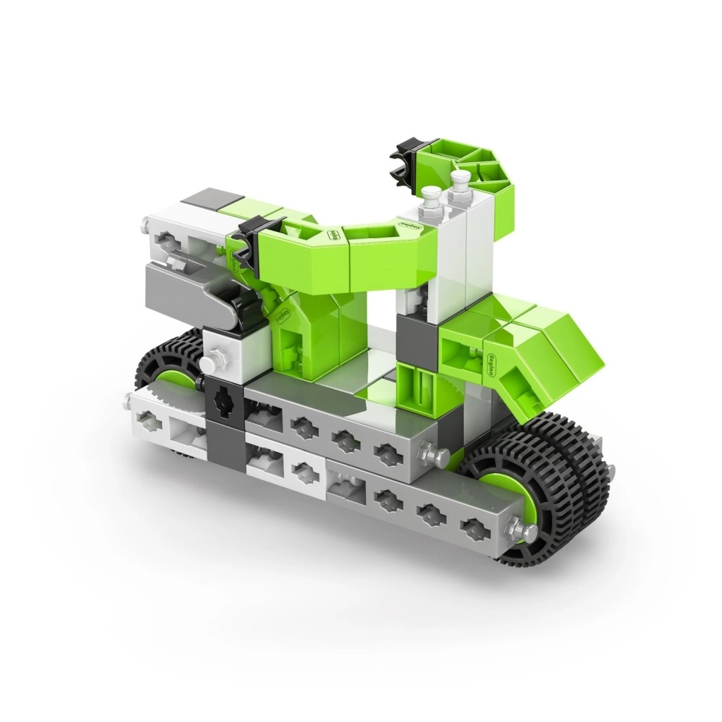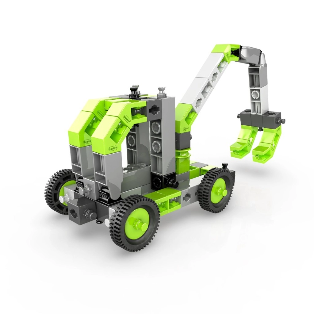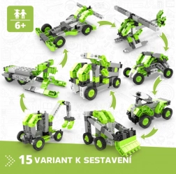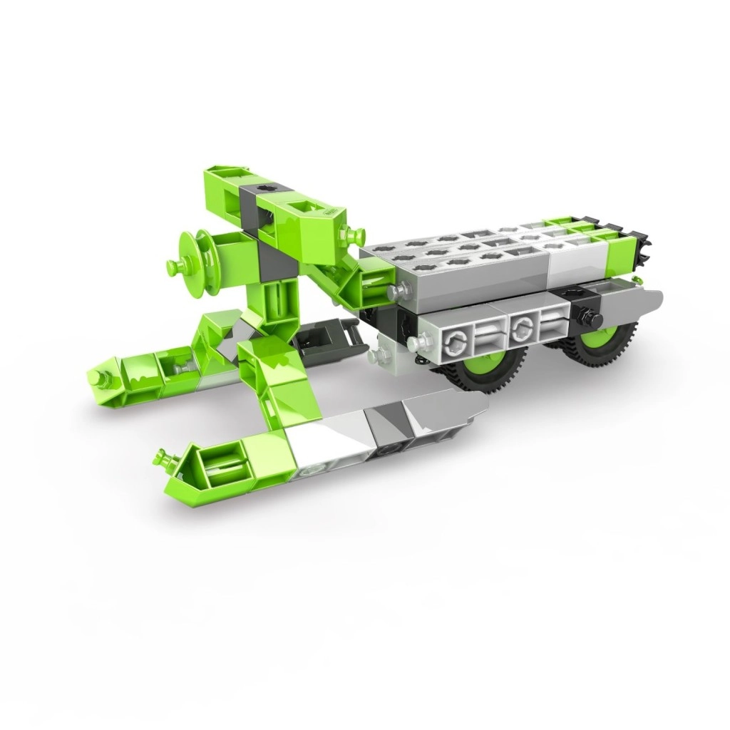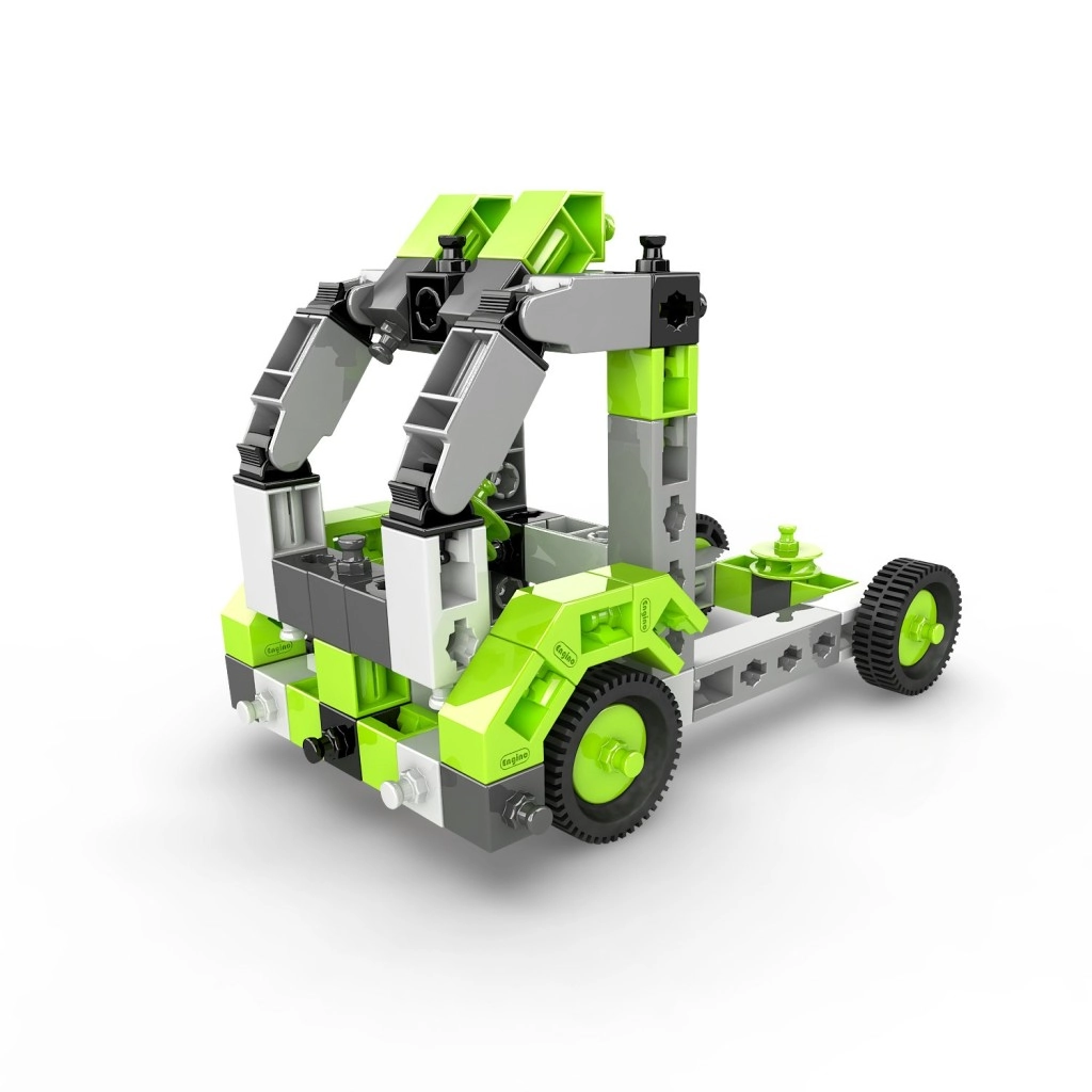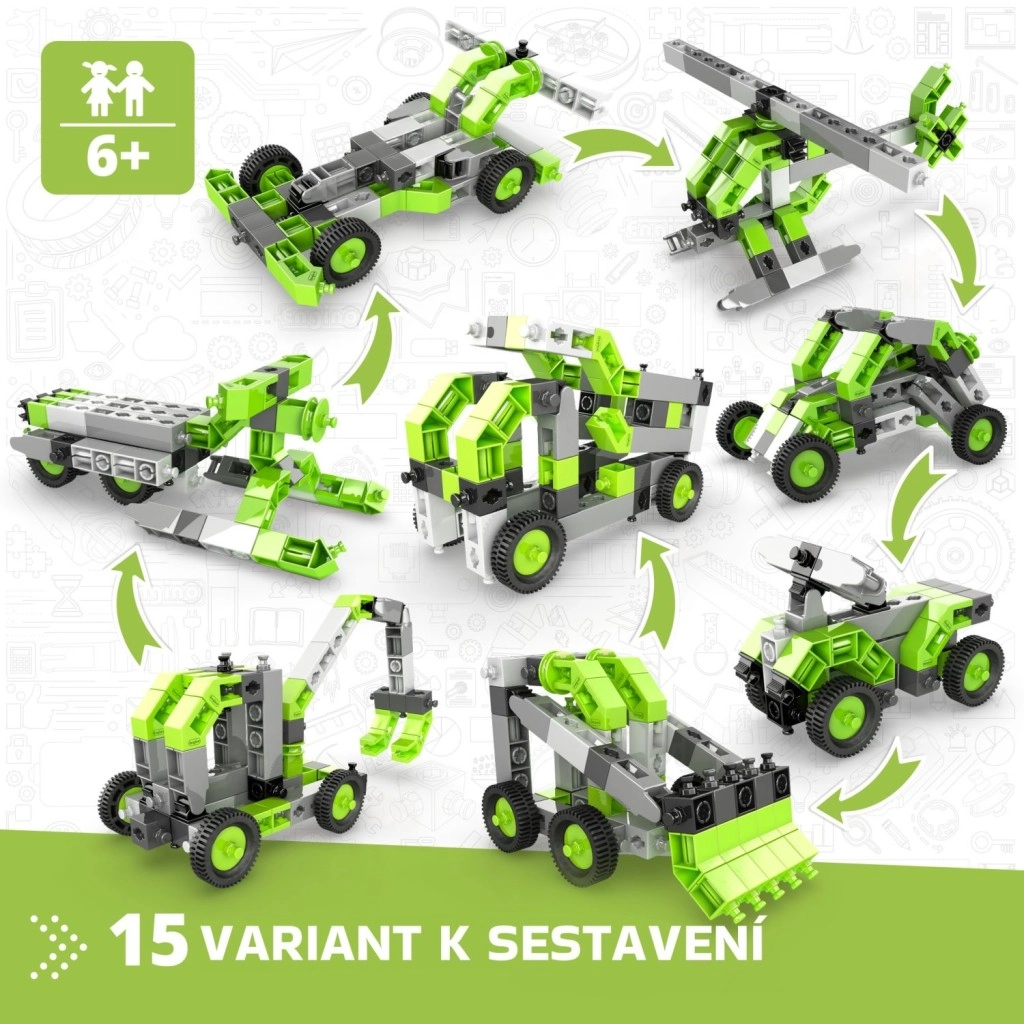 Ustvarite zbirko vozil s kolesi, dvižnimi rameni in drugih strojev, ki spodbujajo domišljijo in STEM veščine. Set je izdelan v EU (Ciper) in je v celoti združljiv z drugimi gradbenimi seti Engino, zato so možnosti razširitve praktično neomejene.