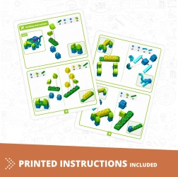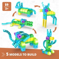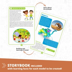 Gradbeni komplet Engino Učimo se - divje živali otrokom ponuja možnost ne le sestaviti do 5 različnih modelov, temveč tudi odkrivati zanimiva dejstva o živalih. Učite se skozi zabavne aktivnosti, kot so pobarvanke, povezovanje točk ali vaje iz matematike, vse podprto z aplikacijo za razširjeno resničnost.