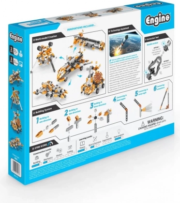 Snap‑fit sistem ohranja modele stabilne in je združljiv z drugimi gradbenimi seti ENGino, zato so možnosti razširitev skoraj neomejene.