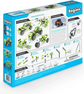 ENGino Inventor Buggy razvija veščine na področjih STEM in podpira eksperimentiranje s prenosi, tečaji in konstrukcijskimi elementi. Zaradi združljivosti z drugimi seti ENGino lahko svojo zbirko zlahka razširite in ustvarite še bolj dodelane modele.