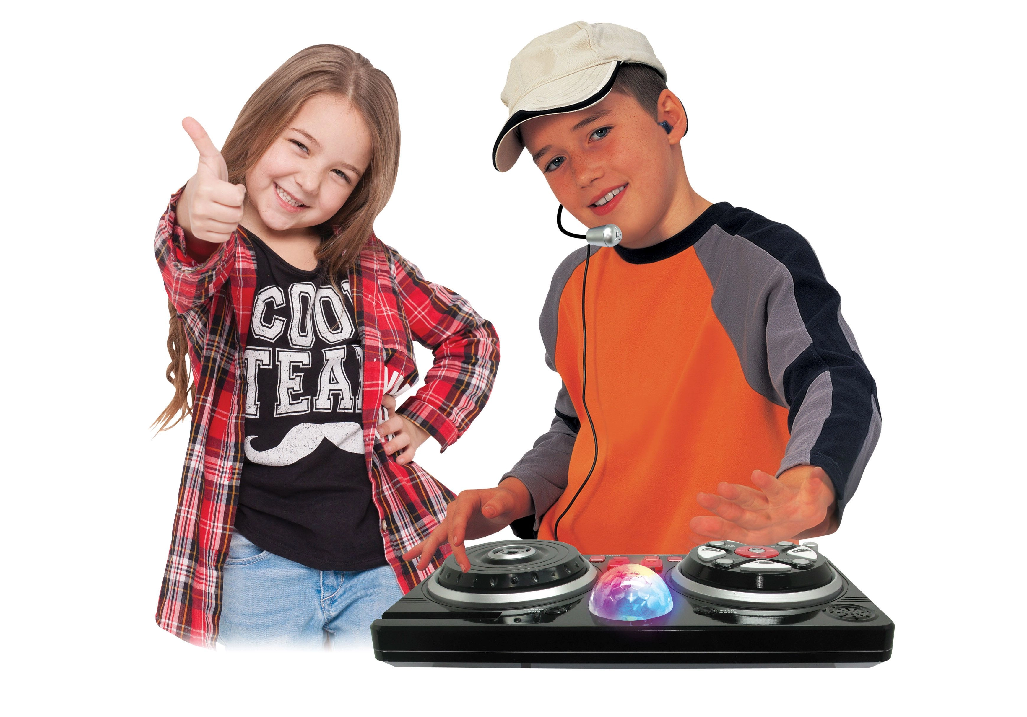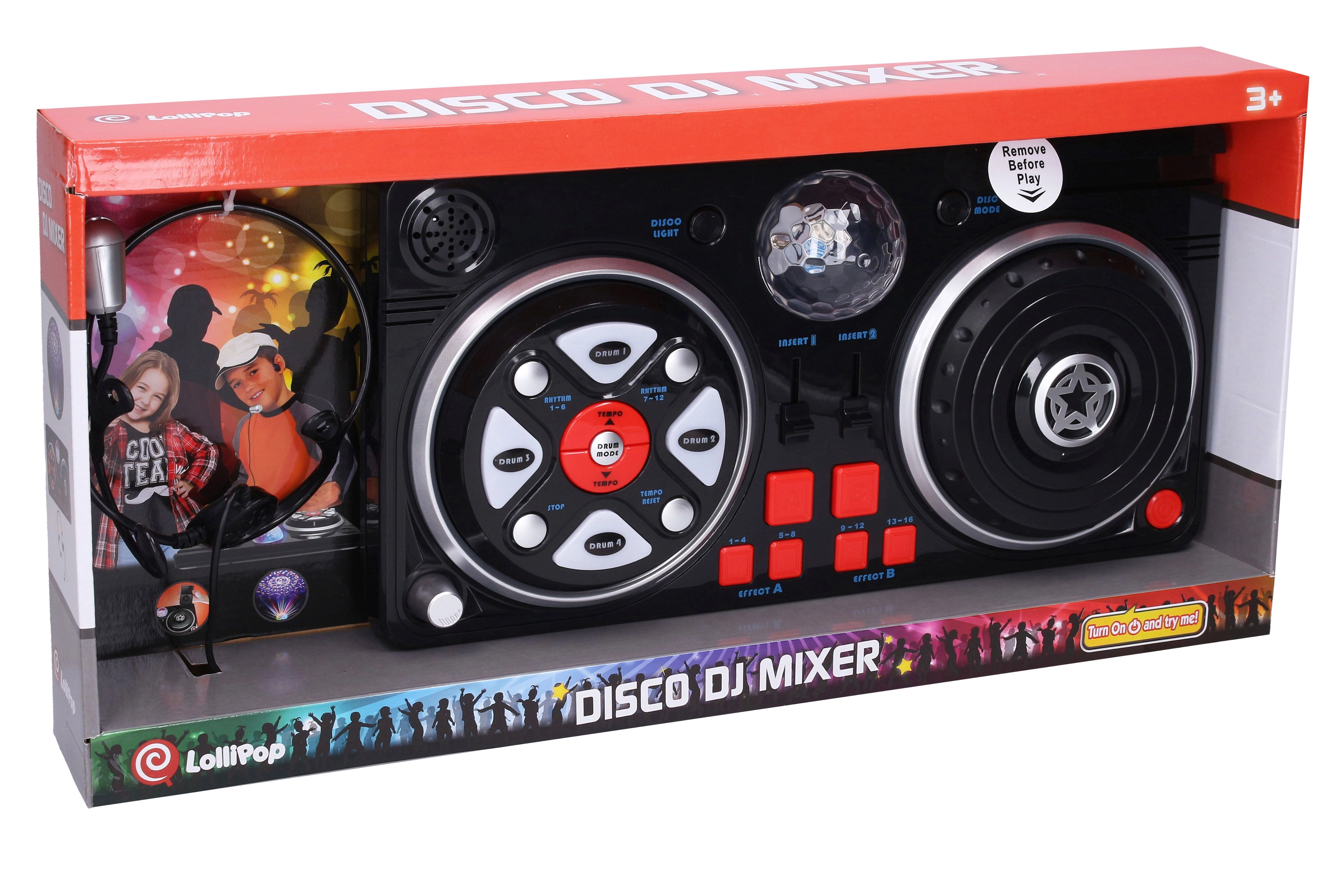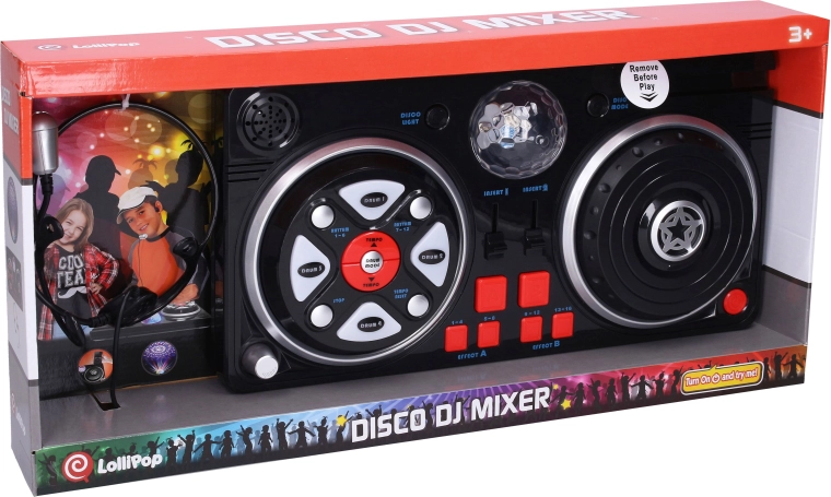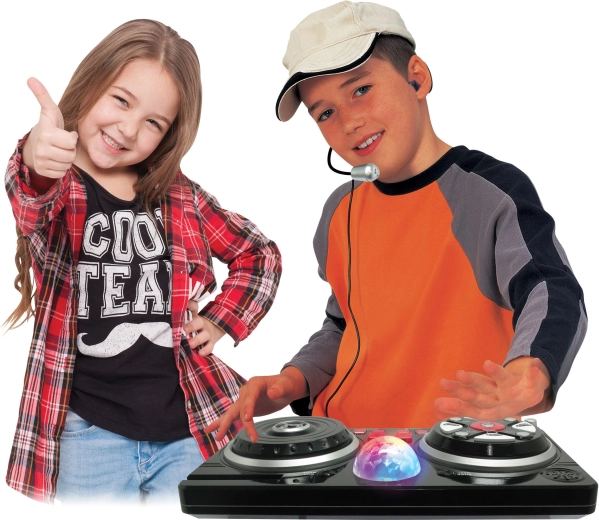 Spremenite otroško sobo v majhen snemalni studio. Ta mešalna miza z udobnim naglavnim mikrofonom in svetlečo disko kroglo ponuja bogat nabor funkcij za kreativno igro in prve glasbene poskuse. Zahvaljujoč priklopu mobilnega telefona ali mp3 predvajalnika lahko preprosto predvajate najljubše skladbe in jih mešate z beati in učinki.